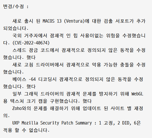 - UXP Mozilla security patch summary: 1 fixed, 2 DiD, 6 not applicable.