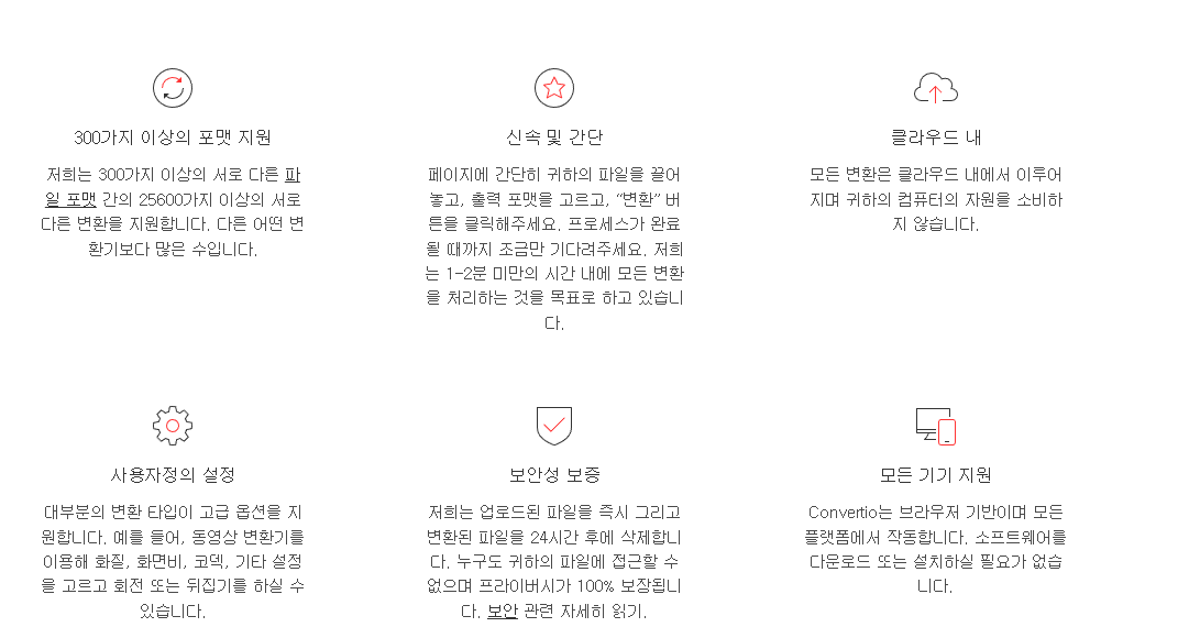 300가지 이상의 포맷 지원 저희는 300가지 이상의 서로 다른 파일 포맷 간의 25600가지 이상의 서로 다른 변환을 지원합니다. 다른 어떤 변환기보다 많은 수입니다. 신속 및 간단 페이지에 간단히