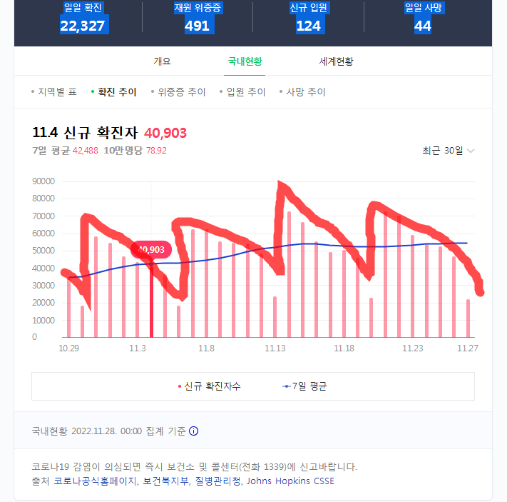 - 이번주도 코로나 상어플로우 유지되네 ㄷㄷ2022년 11월 28일