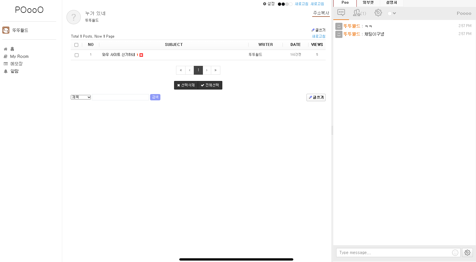 소통가능한 게시판과 채팅이 지원되고 있으며