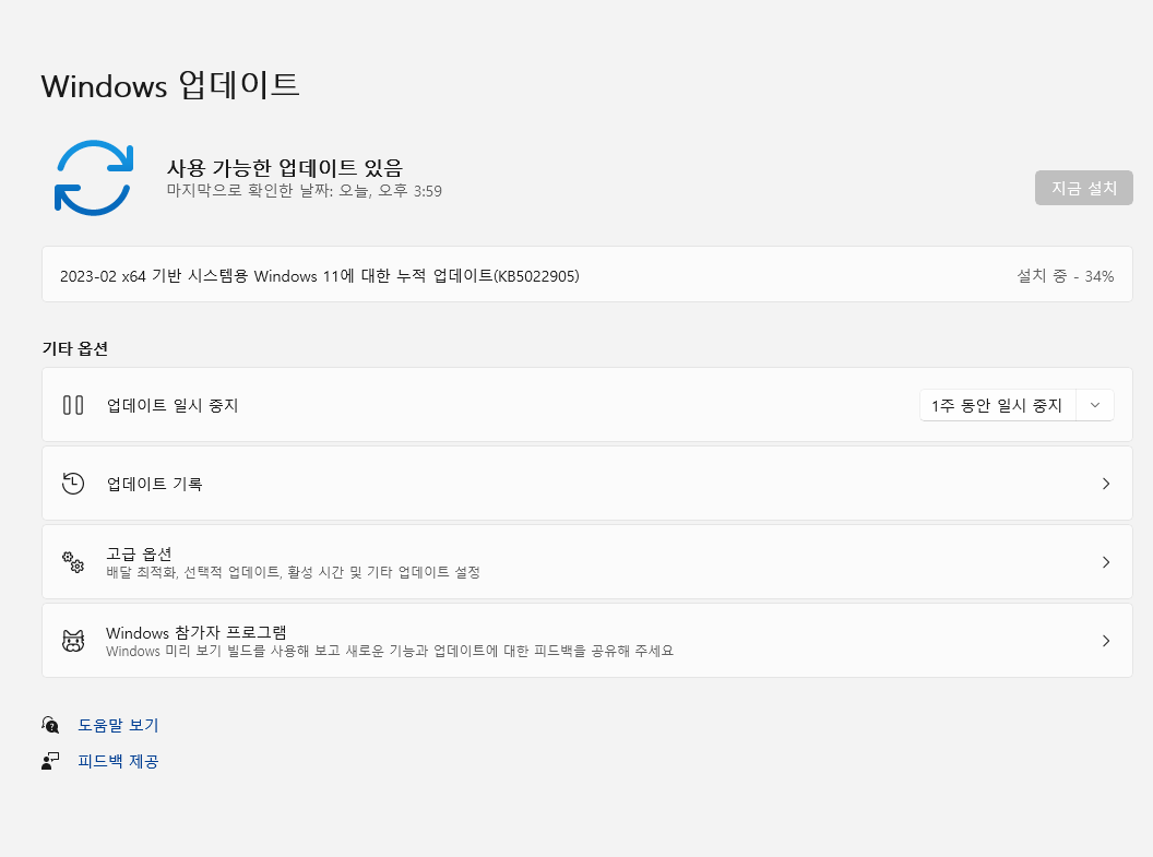 - 윈도우11 시스템 업데이트 큰거 있습니다2023년 02월 24일