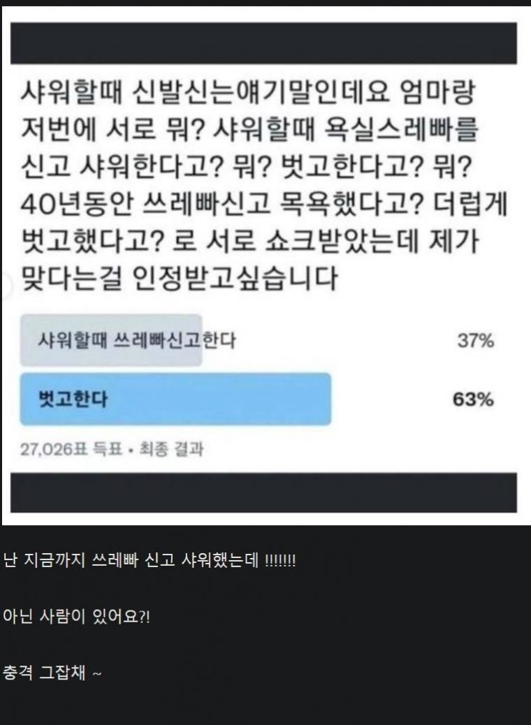 - 요즘 핫하다는 샤워실 쓰레빠 논쟁..jpg2023년 02월 27일