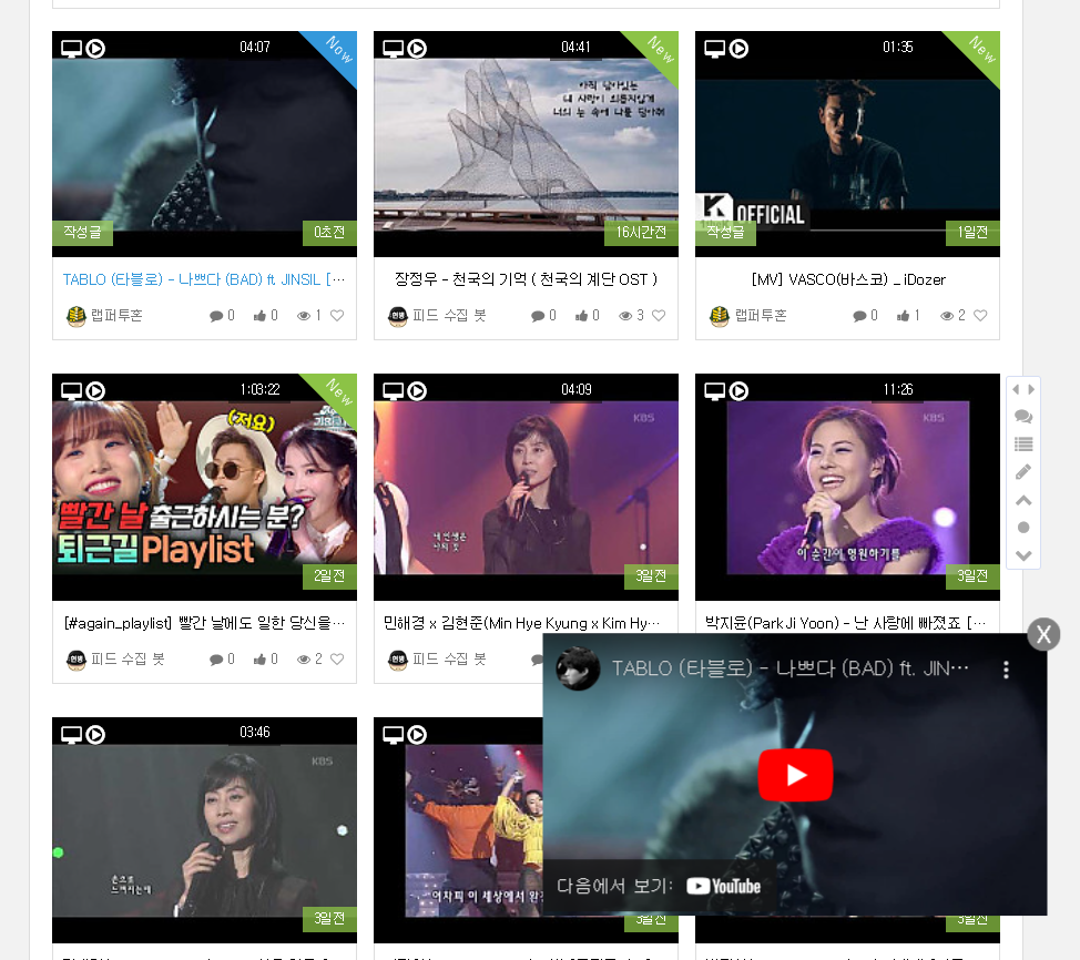 동영상은 썸네일 리스트도 유튜브처럼 보여주고