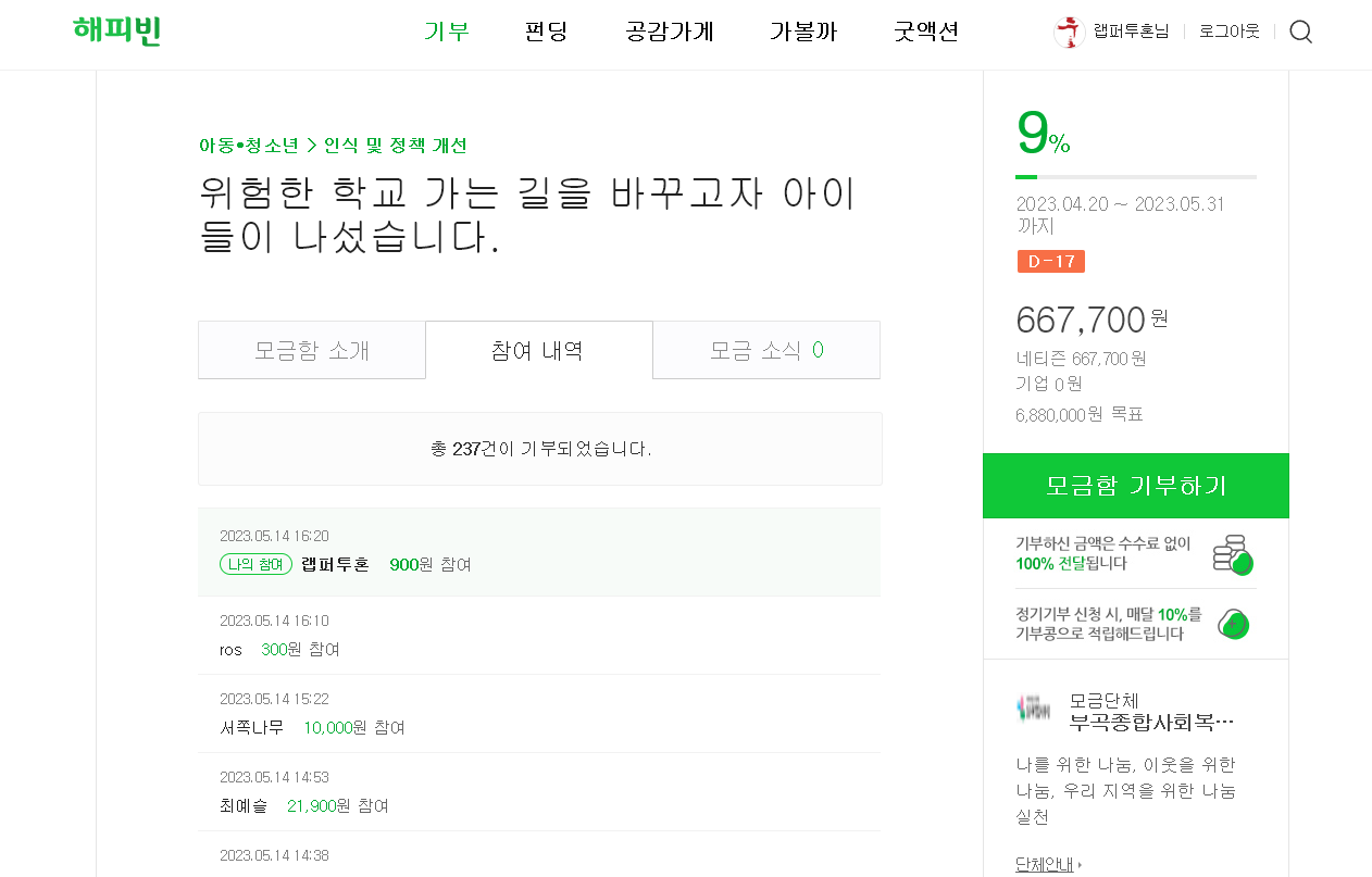 직접 안전한 통학로를 개선하기 위해 아이들이 보행과 관련한 안전교육을 듣고 통학로의 위험한 부분을 조사하여 지역주민들에게 캠페인과 신문을 통해 알리고자 합니다.