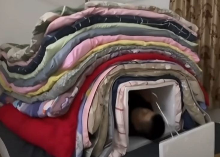 이불을 겹겹히 쌓아서 자고