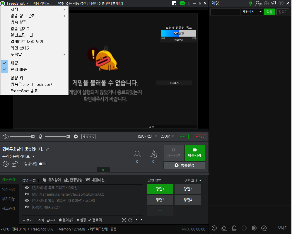 자 이번에는 아프리카 방송프로그램을 살펴봅시다